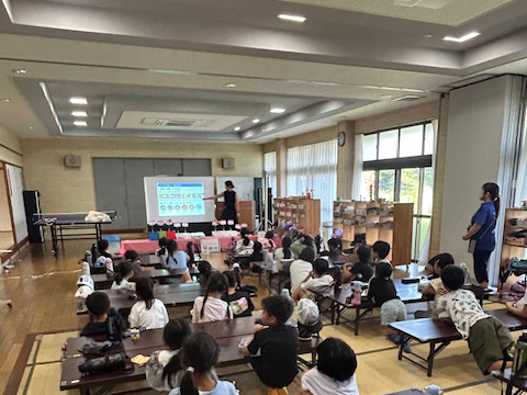 お金を使う機会の少ない幼稚園、保育園の年長児に対し、お買い物のルールやマナー、レシートの意味などお金の基礎を身につけてもらうための講座です。お金についての話を聞いてから、どーなつの買物たいけんをします。講師は、J-FLECが認定した講師が務めます。