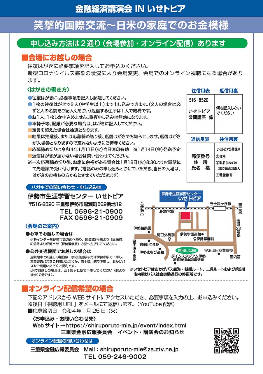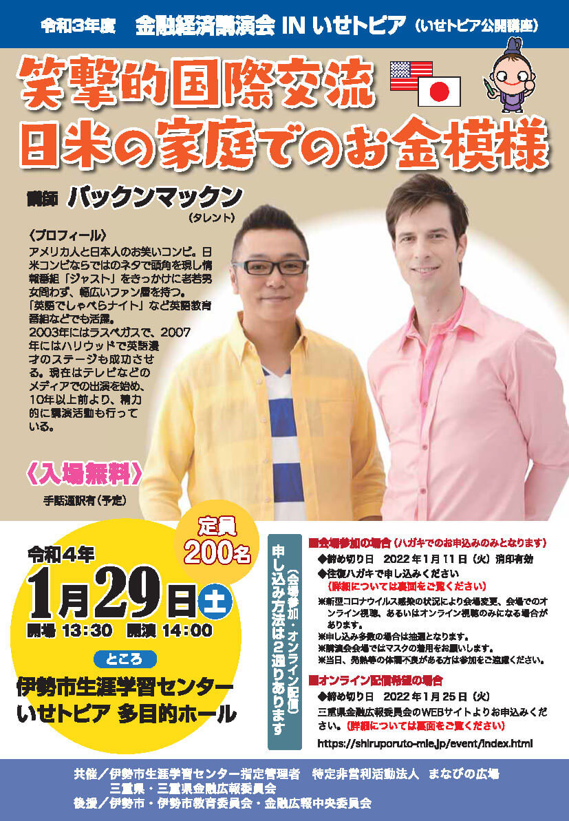 令和3年度 金融経済講演会 IN いせトピア(いせトピア公開講座)笑撃的国際交流 日米の家庭でのお金模様