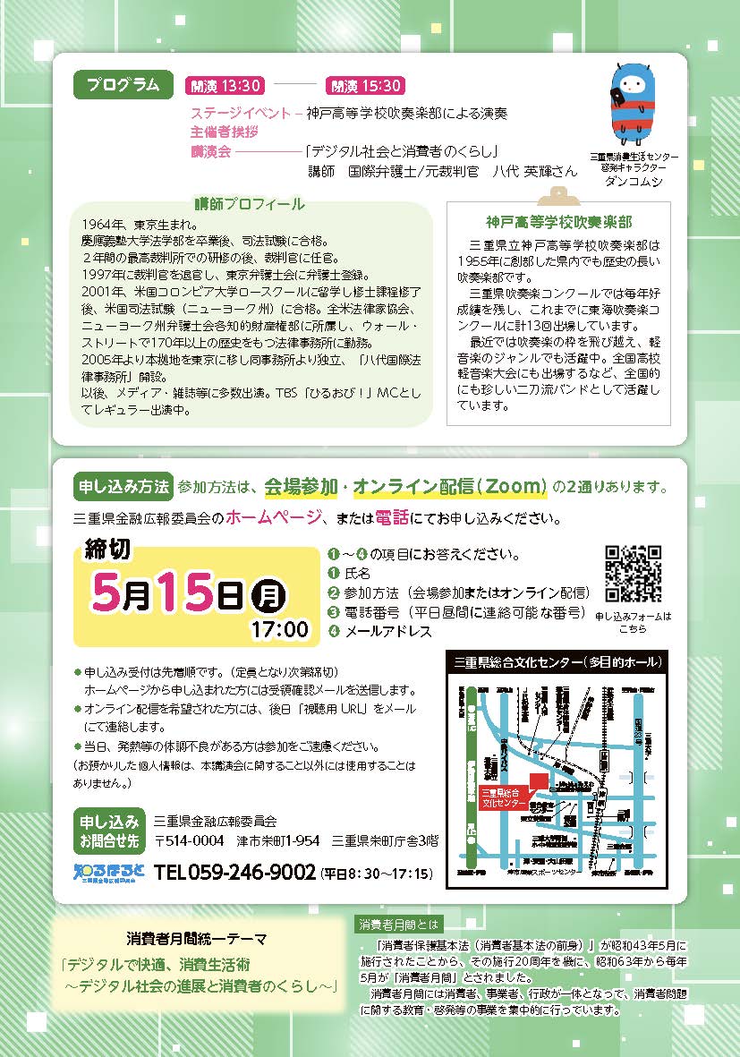 三重県金融広報委員会のホームページ、または電話にてお申し込みください。
