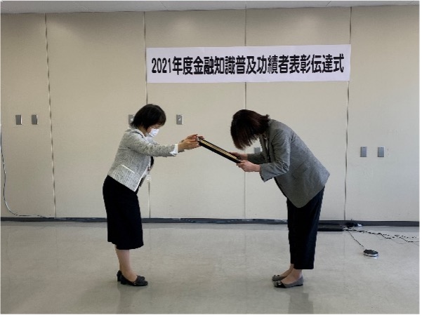 2021年度金融知識普及功績者表彰の伝達式を行いました。